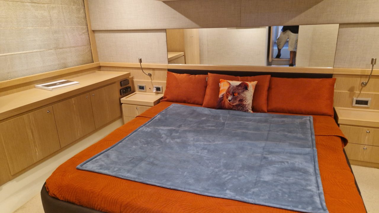 Constructeur : Ferretti Yachts Année : 2011 Longueur : 15,88 Tirant d’eau minimum : 1,45 Pavillon : France Matériau : PRV Largeur : 4,96 Modèle : MAN Diesel x 2 In Board Puiss. Unit. (CV) : 800 Heures : 580 Réservoir de carburant : 2200 L